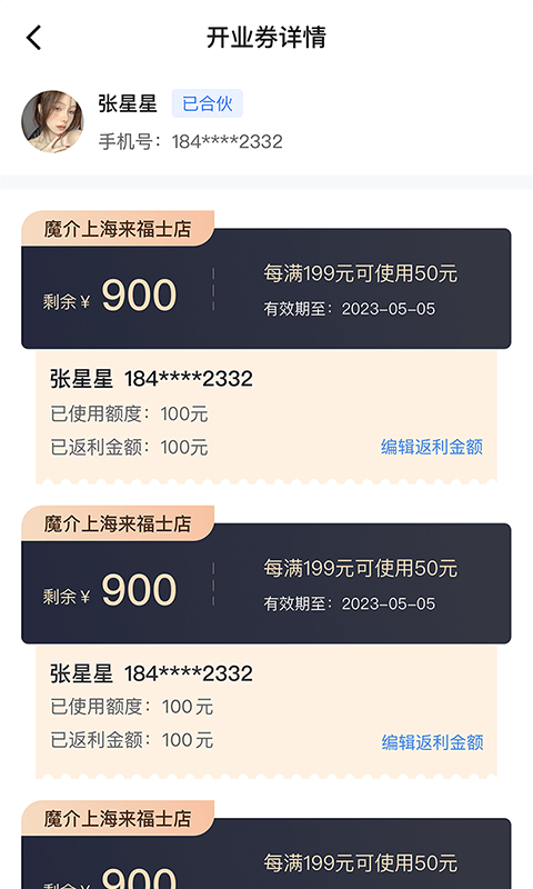 描述:本产品为门店运营工具型产品,为魔介生活美学馆的运营人员提供管理信息、人员等相关功能,可操作支配门店优惠活动券,为门店日常运营赋能